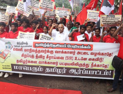 மேலும் படிக்கஇந்தியத் தேர்தல் ஆணையமே! வெளி மாநிலத்தவர்க்கு வாக்காளர் அட்டை வழங்காதே! சிறப்புத் தீவிர சீராய்வை (SIR) உடனே நிறுத்து! சென்னையில் கொட்டும் மழையி...