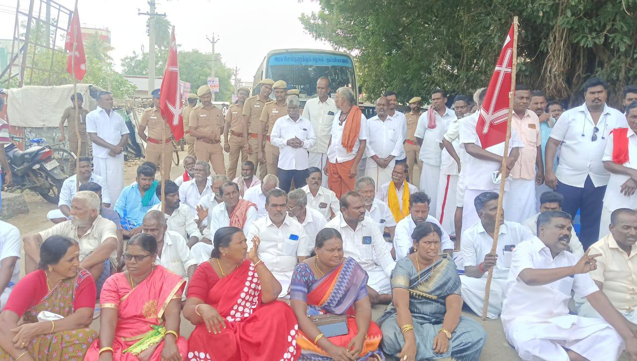 இந்த சாலை மறியல் போராட்டம் தமிழ்நாடு விவசாயிகள் சங்கத்தின் ஒன்றிய தலைவர் கே எம். அறிவுடைநம்பி, ஒன்றிய செயலாளர் பி.சௌந்தர்ராஜன், ஒன்றிய பொருளாளர் எம்.ஆர்.முருகேசன் ஆகியோர் தலைமையில் நடைபெற்றது.