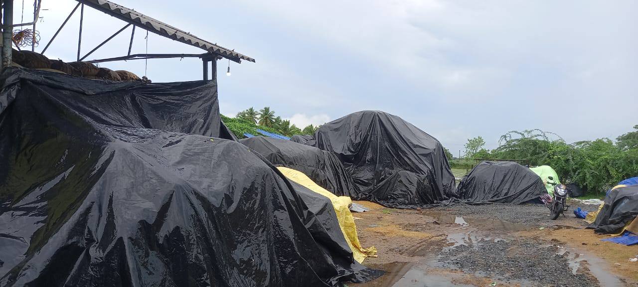 ஒரு நேரடி நெல் கொள்முதல் நிலையத்தில் எத்தனை மூட்டைகள் தான் அடுக்கி வைக்க முடியும், மழை செய்து கொண்டிருப்பதால் வெளியிலும் அடுக்கி வைக்க முடியாது.