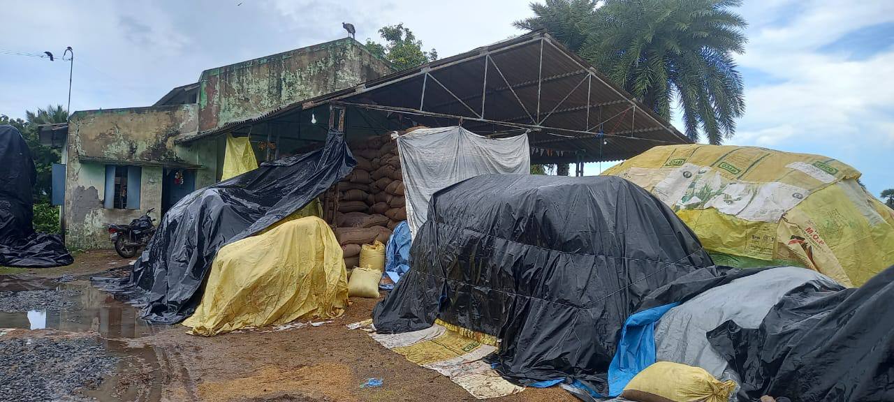திருவாரூர் மாவட்டம் முத்துப்பேட்டை தாலுகா பெருவிடைமருதூர் நேரடி நெல்கொள் முதல் நிலையத்தின் நிலை இது. கடனை வாங்கி சிறு குறு விவசாயிகள் இந்தாண்டு தண்ணீர் பஞ்சமில்லாமல் குறுவை சாகுபடி செய்தனர்.