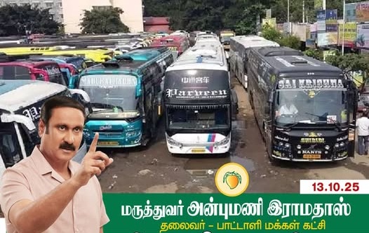 தீப ஒளிக்கு மதுரை செல்ல ரூ.5,000 - கொள்ளையடிக்கும் ஆம்னி பேருந்துகள்: நடவடிக்கை எடுக்காமல் கெஞ்சுவதா? தீப ஒளித் திருநாளையொட்டி வரும் சனிக்கிழமை முதல் விடுமுறை விடப்பட்டிருக்கும் நிலையில், அதற்காக ஊ...